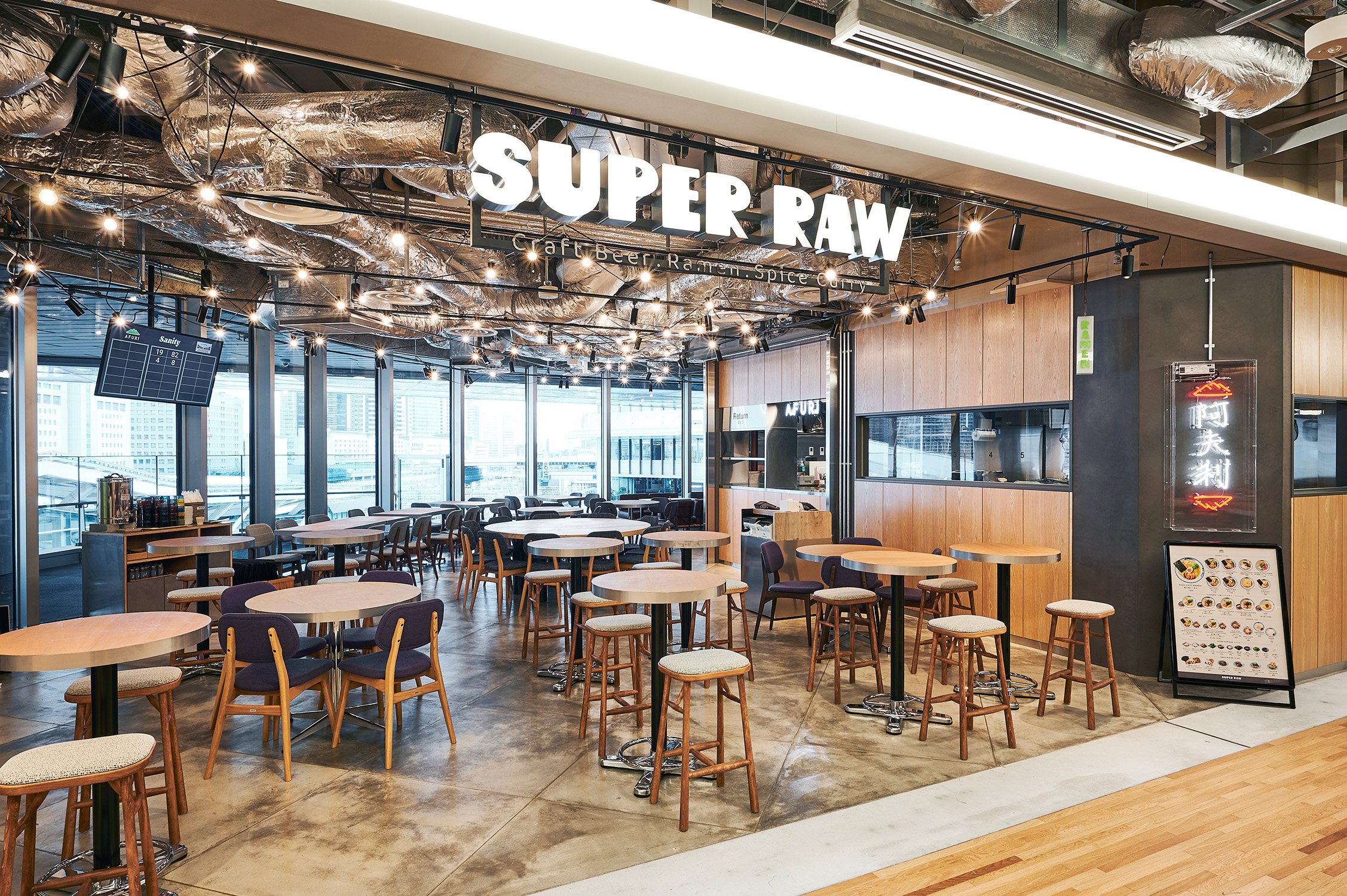 「SUPER RAW」は、ラーメン「AFURI」、カレー「SPICE THEATER」、クラフトビール「Sanity」という魅力あふれる3社ブランドがひとつの空間に集まり、新しいスタイルで“食の楽しさ”をお届けします。